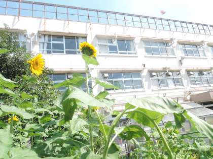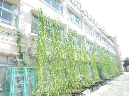 暑い中、学校のグリーンカーテン(ヘチマやゴーヤ等)や教材園(キュウリ、トマト、ナス、オクラ等)の植物はぐんぐん成長しています。