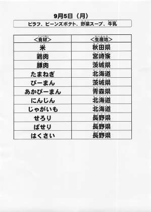 給食食材の産地情報