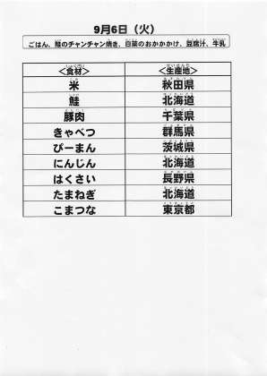 給食食材の産地情報
