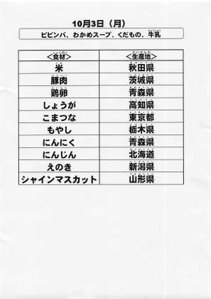 給食食材の産地情報