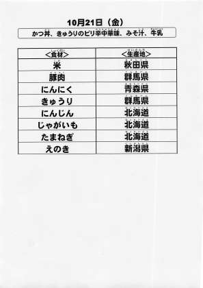 給食食材の産地情報