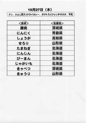 給食食材の産地情報