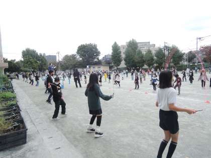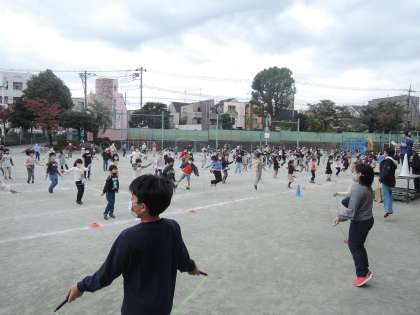 10月28日 今日の体育朝会は低学年の「なわとび」でした。先生が跳び方を紹介し、それに合わせて運動委員会の5,6年生がお手本の跳び方を見せてくれました。1年生の子どもたちは一つずつ紹介される技に「あの跳び方、知ってる!」「どうやって跳ぶの?」との反応。流石に3年生になるとスムーズに跳べていました。なわとび週間はここで終わりですが、休み時間も使って、縄跳び名人がたくさん生まれてくれるとうれしいですね。