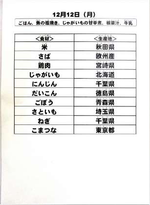 給食食材の産地情報