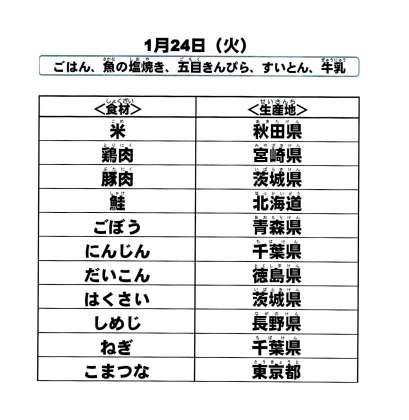 給食食材の産地情報