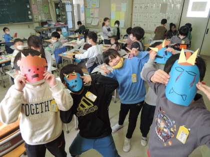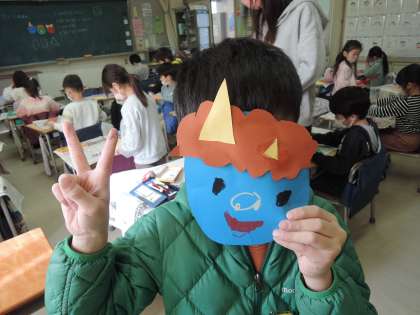 明日は節分ですね。一年生では節分のオニを作っていました。自分の中の悪いオニ、追い払いだしたいオニはどんなオニ?を考えながら、思い思いのオニを作っていました。怠けオニ、寝坊オニ、めんどくさいオニ、色々なオニが出てきました。