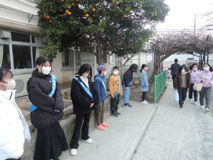 今日は「あいさつDAY」でした。代表委員の児童が門に立ち、登校してくる子に挨拶をしていました。今日も冷え込みが激しく、登校時学校のIOT百葉箱の温度は2.8度を指していました。しかし、寒さにも負けず、半そでで元気に挨拶運動を行う姿もありました。