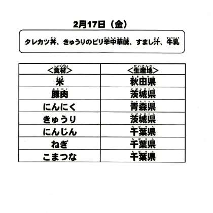 給食食材の産地情報