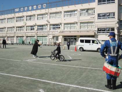 玉川警察、PTA保護者の方々にご協力をいただき、自転車安全教室を行いました。道路での走行や信号待ちの仕方など、改めて確認を行いました。これからは一人で自転車に乗る機会も出てきます。今日の学びをしっかりと守って安全に気を付けていきましょう。お手伝いにご協力いただきました皆様、ありがとうございました。