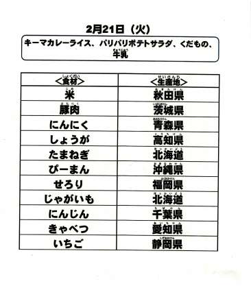 給食食材の産地情報