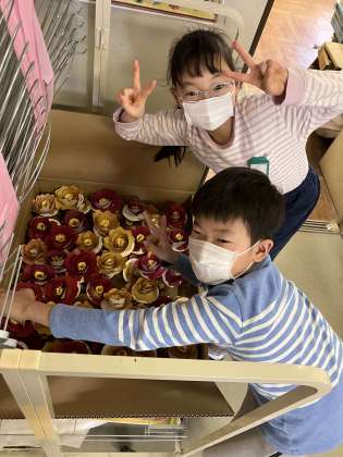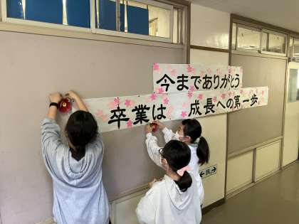 校内を回っていると、6年生をお祝いするための掲示が目に入ってくるようになりました。今日は、4年生の児童が作成した花飾りを、6年生の教室前に掲示している場面に出会いました。6年生は喜んでくれるかな?と話しながら飾る4年生でした。卒業式に向けた準備が着々と進んでいます。