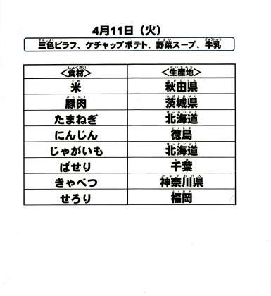 給食食材の産地情報