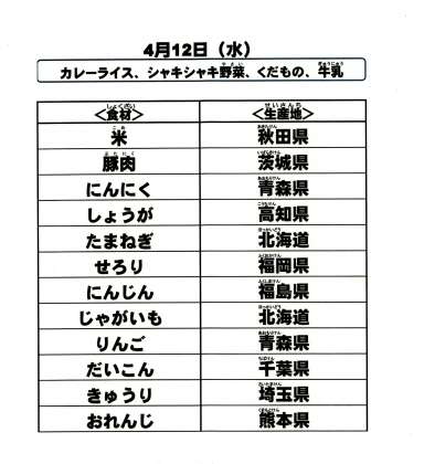 給食食材の産地情報