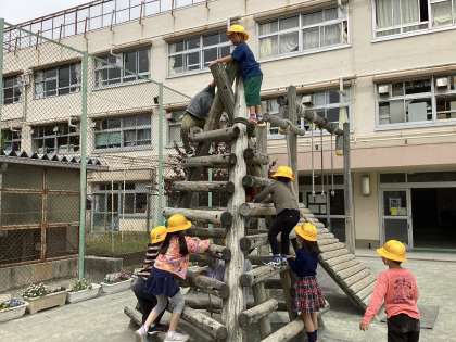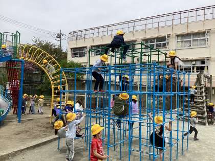 1年生は学校探検で、校庭へ行きました。校庭の遊具の使い方や遊び方のお約束を確かめてから、自由時間。「やっと遊べる!」と嬉しそうに遊具に向かって駆け出す子どもたち。その後は遊具で遊んだり、鬼ごっこをしたりと、思い思いの時間を過ごしていました。