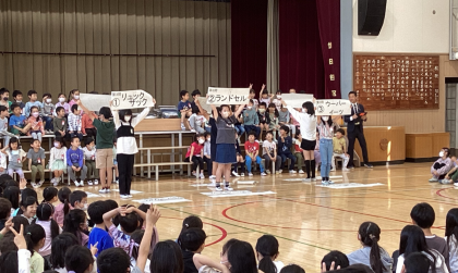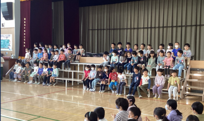 代表委員会の考えた「ひがたまクイズ」や2年生からの歌のプレゼントを楽しみました。おかえしに、1年生からも「どきどきドン1年生」を歌ってもらいました。