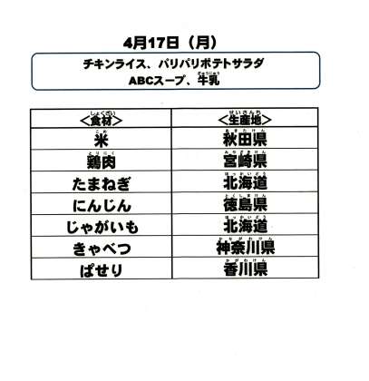 給食食材の産地情報