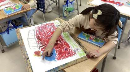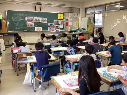あいにくの雨のため、消防写生会は室内での実施となりました。本物の消防車を目の前にして絵を描くことはできませんでしたが、教室の机の上で描くことができたので、上手に描けていた様です。教室前に掲示されましたら来校の際、ぜひご覧ください。