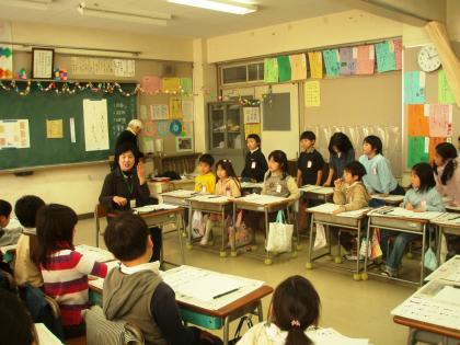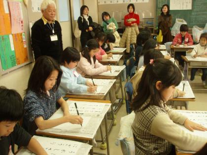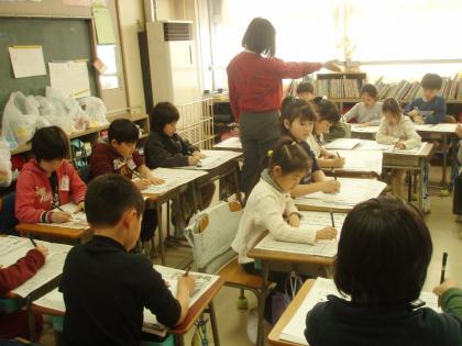 2年生は「日本語」に時間で筆を使って字を書きました。書写の時間ではまだ硬筆でしか学習をしていませんが、今日はゲストティチャーの方に、筆の持ち方や書き方を教わって書きました。ちょっと字が上手になった気分でした。