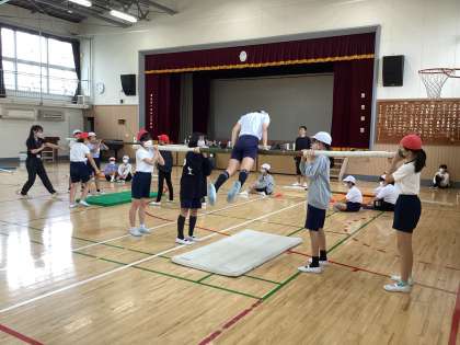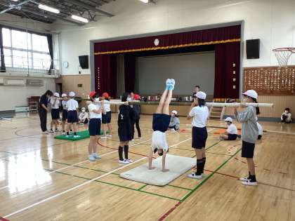 6年生は棒体操も表現の一部に組み込んでいます。今日は体育館で技の練習をしました。技を披露する人は、支えてくれる友達のことを思って乗り、支える人は、高い所で技に挑戦する恐怖心とも戦う演者を思って支え、お互いの気持ちを一つにしていきます。
