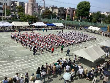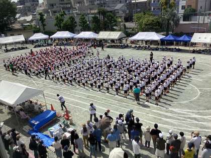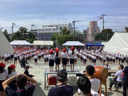 晴天の青空の下、運動会を開催いたします。ご来校いただきます皆様、本日は大変暑くなりますので、水分補給を小まめにしてください。そして子どもたちのパフォーマンスに大きな声援をお願いします。