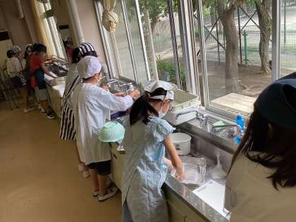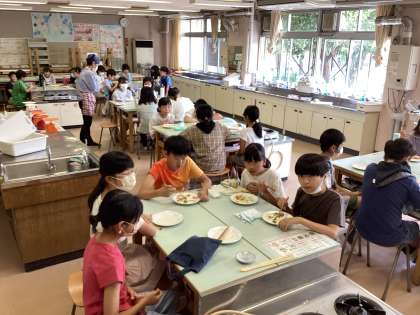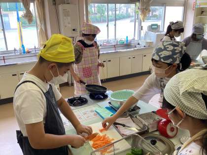家庭科では調理実習を再開しています。今日は6年生が「彩りいため(野菜炒め)」を行いました。安全に気をつけて、包丁や器具を使い、美味しく調理ができたようで、とても嬉しそうな顔を見せてくれました。最後までしっかりと片付けもできました。