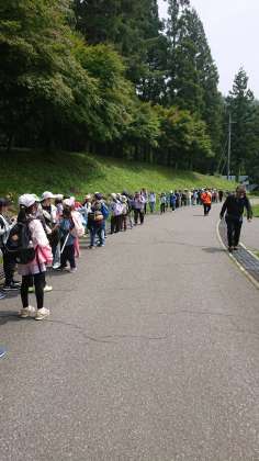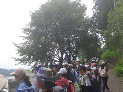 暑さとの勝負になった里山ハイキングに、水分補給は欠かせません。そんな中、雷の音が聞こえてきました。ハイキングもここで切り上げです。