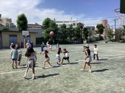 今朝は、久しぶりのたてわり班遊び。校庭ではドッジボール、教室内では椅子取りゲームやハンカチ落としなど、6年生のリーダーシップの元、行われています。今日も笑顔がいっぱいです。