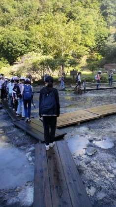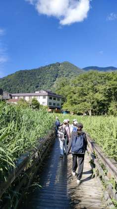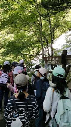 予定通りホテルを出発して湯元へ向かいました。湯元源泉は想像していた以上に臭い、子ども達は鼻を押さえて「めっちゃくさい」と。その後、湯滝へ向かいました。湯滝の水は透明度が高く、とても綺麗でした。透き通る水の流れに見入っていました。