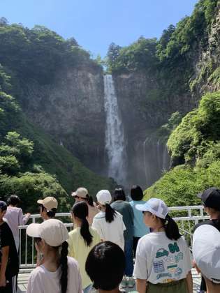 マイナスイオンをたくさん吸い込み、ハイキングで疲れた体が癒されている様です。その滝つぼを覗き込む子ども達から、「メガネを落としたらどうしよう?」という声も。覗き込むと吸い込まれそうな感じ、分かります。メガネは絶対に落とさないようにしてください。