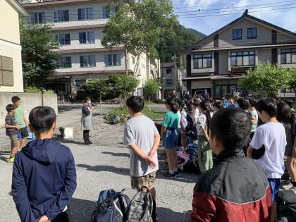 部屋の片付け、荷物の整理、忘れ物の確認をしていよいよホテルを後にします。2泊お世話になったホテルで退館式を行いました。3日目の活動スタートしました。