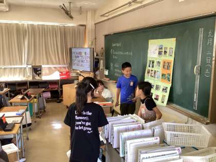 本日より2学期の学校公開が始まりました。教科の授業、夏休み自由研究の発表、ゲストティーチャーによる授業など、さっそく各学級で児童のがんばる姿が見られています。