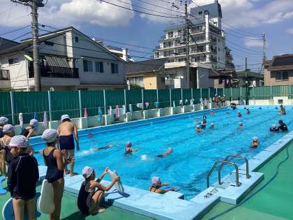 今日の水泳の授業で3年生、4年生の指導が終わりました。初めは入水すら拒んでいた児童がクロールを泳げるまでになったという成果も聞こえました。代表児童の挨拶では「目標を達成することができた」と誇らしげに発表する素敵な姿もあり、充実した体育の授業を実施することができました。