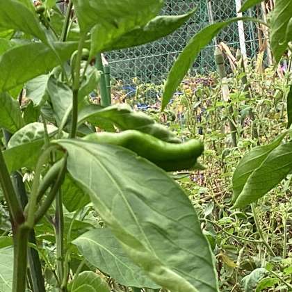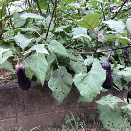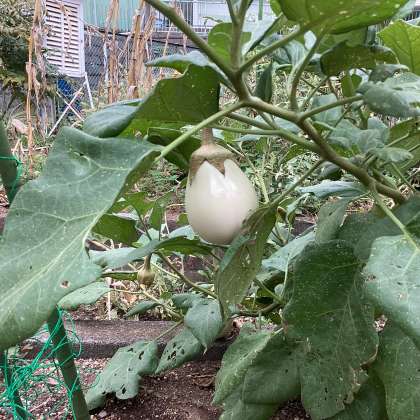 2年生の教材園では野菜が大きな実をつけています。「先生、白ナスの話しってしましたっけ?」と話しかけてきてくれた4年生の児童が教えてくれたので、写真を撮ってきてもらいました。白ナスとナスとぴーまんです。