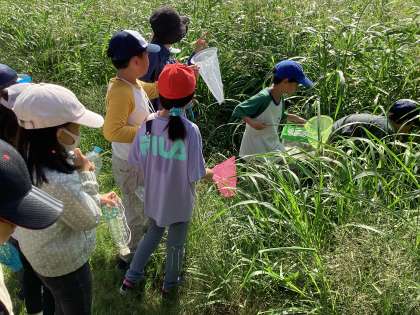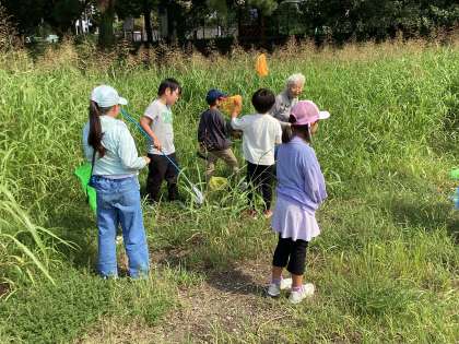 城南環境学習支援グループの皆さんと一緒に「トノサマバッタ」や「シジミチョウ」など様々な昆虫を見付けました。