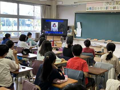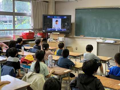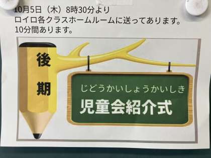 後期児童会の紹介式を動画で行いました。各委員会の委員長からお仕事の内容についてと、各クラスの担当の代表委員の紹介がありました。「あっ!○○さんだ!」と知っているお兄さんやお姉さんが出てきたら、声が上がるなど、皆どの学級でも興味深く見ている姿が見られました。