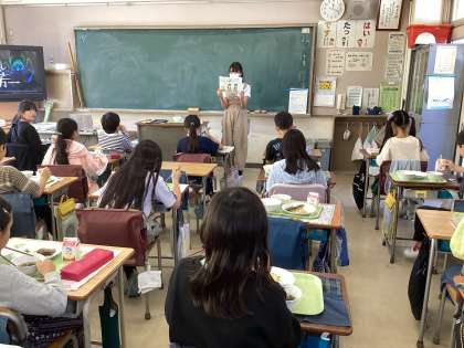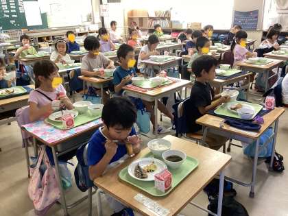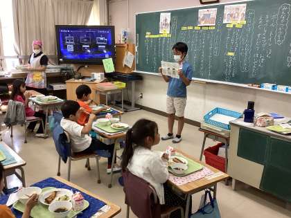 今日の給食の時間に、給食委員会による給食キャンペーンが行われました。今月の目標とともに、秋のオススメも紹介されました。発表する高学年の立派な姿と、発表をしっかりと聞くクラスの子どもたちの姿がとても素敵でした。