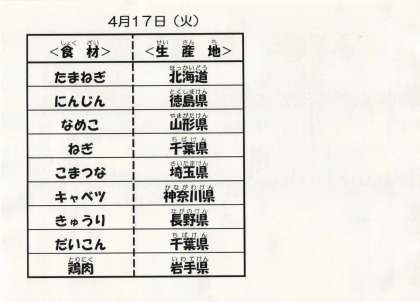 今日の献立は、「こぎつねごはん、なめこ汁、和風サラダ、牛乳」です。