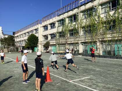 早朝より、連合運動会のリレーに選出された代表選手の練習が行われました。バトンパスのタイミングを掴むために、リードのスタートのタイミング、渡す際の掛け声など、先生から指導を受けたことを一つ一つ確かめていました。本番に向けて少しずつ力が入ってきています。