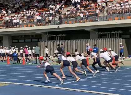 いつもとは異なる大きな運動場、他の学校の選手に緊張した面持ちでしたが、いざレースが始まるとどの児童も一生懸命取り組む姿が見られました。