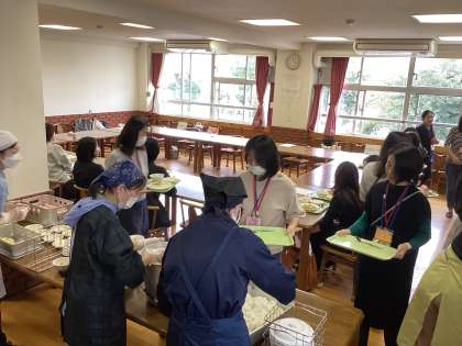 コロナ禍となり、実施できていなかった会でしたが、今回は3、4年生の保護者の皆様をお招きし、久しぶりに給食試食会を行いました。栄養士より学校給食についての説明を行い、その後、試食をしていただきました。本日のメニューは「こまったさんのカレーライス」と「和風サラダ」。「美味しい、美味しい」と嬉しいお言葉をたくさんいただきました。配膳の関係で余ってしまった分もおかわりをしていただき、美味しく召し上がってくださいました。笑顔と感謝のお言葉に、今後も美味しい給食を提供していければと、改めて思った次第です。