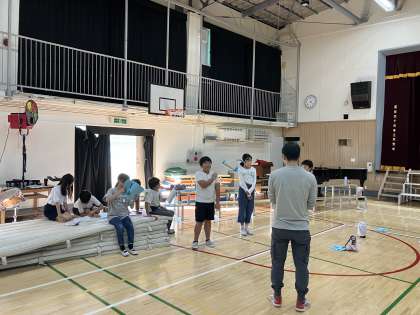 体育館でグループごとに分かれて練習を行なっていたのは5年生。「声の大きさがいいね」「もうすこしこっちまで動くといいんじゃないの?」自分達で動きや振りをチェックしていました。先生とも動きや立ち位置の確認をし、楽しそうに練習に励んでいます。