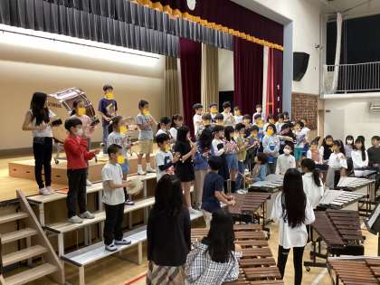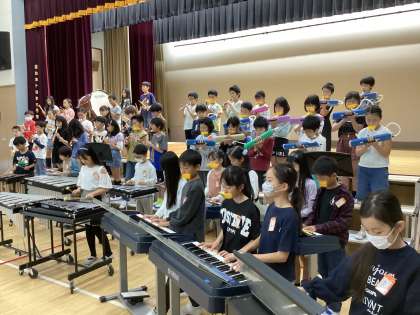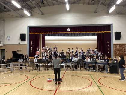 音楽発表の4年生は体育館練習です。先生からはパートごとに気を付ける点を指導いただき、皆で確認をした後、全体で合わせています。軽快なリズムに、子ども達もノリノリで練習に取り組んでいます。完成度を高めていくために、休み時間も練習をしていくとのこと。がんばっています。