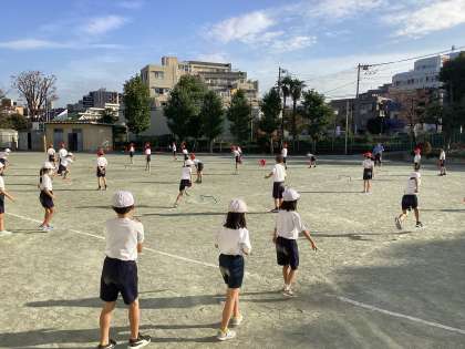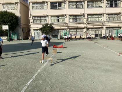 今日のめあての速くハードルを走りこえられるよう、小型ハードルをみんなで話し合って並べました。繰り返し走りこえる中で、リズミカルに走りこえられた気持ちよさを味わったり、その理由に気付いたりと、多くの学びがあった1時間でした。ハードルを片付け終える最後まで、元気一杯の3年生でした。