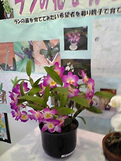 写真左のデンドロビュームは、4年目の花です。(現在の中学1年生が4年生の時にもちかえって育てているもの)