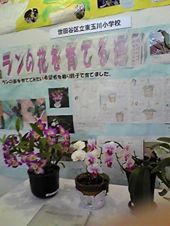 写真右のコチョウランは、上緑会や3年生の種から育てるパンジー、東玉川地区会館前花壇づくりボランティア等でご指導いただいている大田さんが育ててくださったものです。出品する鉢の数に限りがあったり、花の時期がすぎてしまったりしたものもありましたので、写真や観察記録を展示させていただきました。ご協力いただきました皆様、ありがとうございました。
