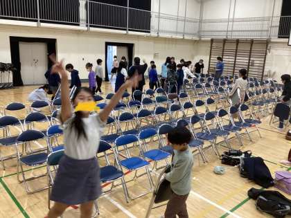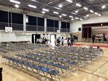5年生によるイス並べやマット運びが終わりました。皆が協力する5年生のおかげで、会場準備もさっと整いました。