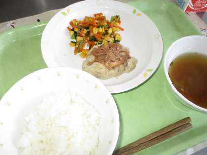 ハンバーグには“おから”をいれることで動物性の脂質を抑えヘルシーに仕上げました。今日も腕によりをかけ一つ一つ手作りしてくれました。
