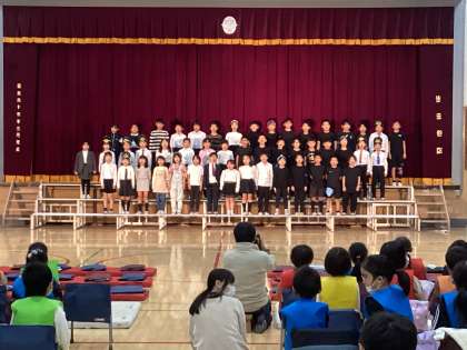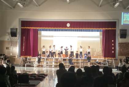 3年生は劇「どろぼう学校」を演じました。「ぬき足、さし足、しのび足」みんなで力を合わせて色々な物を盗んできました。ユーモア溢れる台詞や演技に皆、笑顔になりました。3年生らしい元気いっぱいの演技が見所でした。