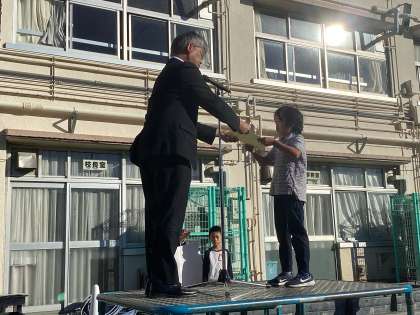 今朝の全校朝会で「税に関する絵はがきコンクール」と「はたらく消防の写生会」の表彰を行いました。校長先生より賞状が渡され、とても嬉しそうにしている姿が印象的でした。