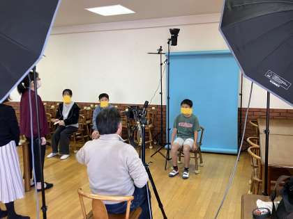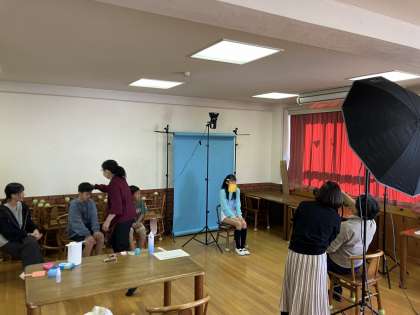 卒業アルバムの個人撮影を行いました。卒業対策委員のお母様方にお手伝いいただき、髪を整え、お洋服もピッとし、撮影の椅子に座ります。カメラマンさんの声に合わせて「はい、キムチ」。皆、笑顔でいっぱいでした。